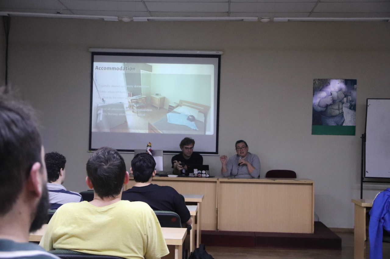 - What is Debian? (Emmanuel Arias) – an introductory session covering the history of Debian and how a DebConf is organized.
